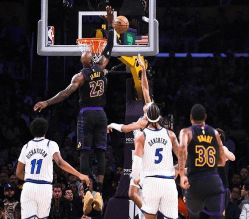 NBA常规赛,湖人坐镇主场迎击魔术队。本场比赛之前,湖人34胜22负排名西部第5,虽然湖人本赛季的状态,不是那么的稳定,面对强队多次翻车,高端局还是吃力一些,但现在这支湖人胜在全员健康,东契奇,詹姆斯,里夫斯三巨头合体,核心进攻火力拉满,他们并非没有冲击总冠军的机会。交易截止日前,湖人又引进联盟顶级射手肯纳德,弥补了三分投射的短板,未来可期。另一边的魔术队,本场比赛之前,30胜26负排名东部第7,作为东部黑马之一,魔术的实力也不容小觑。有点可惜的就是班切罗本赛季状态没有去年好。