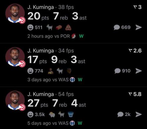 而这也是库明加交易截止日离开勇士加盟老鹰队傲人表现的缩影,加盟老鹰至今3场比赛,库明加合砍64+23+10全能数据。