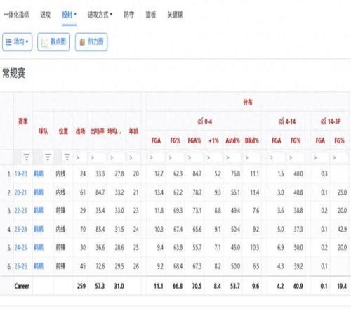 首当其冲的就是进攻手段需要丰富,生涯第6年的胖虎(锡安外号)0-4英尺出手比重依旧很高,本赛季场均9.2次近框作业,中距离和三分加起来只有4.4次。198公分胖虎虽然有蛮力但身高不足,在这个人人有投射的年代,没有投篮的他很吃亏。