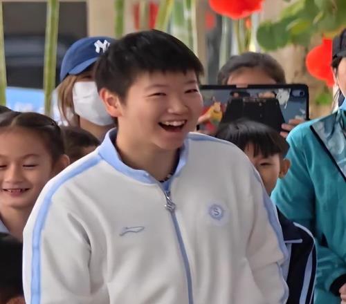 王楚钦、王曼昱、陈熠、陈俊菘等人去了另外一个学校参加国乒校园行活动,同样受到热烈欢迎。王曼昱的个性和孙颖莎不一样,她在人群中有些拘谨。2024年奥运健儿港澳行期间,我们经常看到王曼昱喜欢一个人待着玩手机。相比之下,孙颖莎、全红婵等人玩得不亦乐乎。