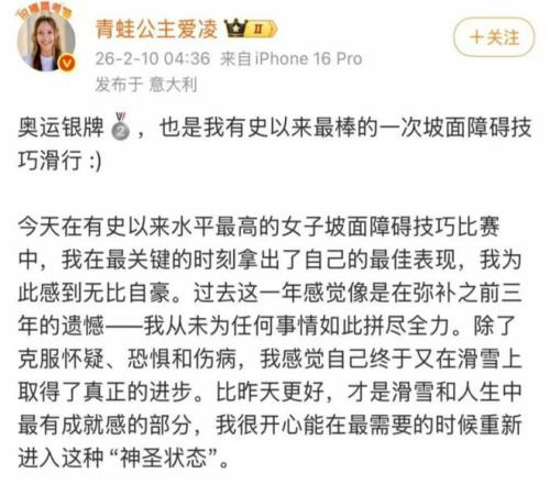 她没说遗憾没夺冠,她说:“我滑出了一辈子最好的动作,我做到了最好的自己,我觉得很骄傲”;