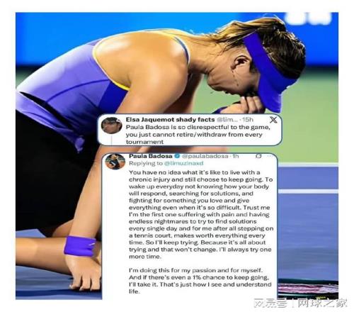 莱巴金娜因病退赛无缘八强,巴多萨因退赛遭网暴忍无可忍发文怒怼