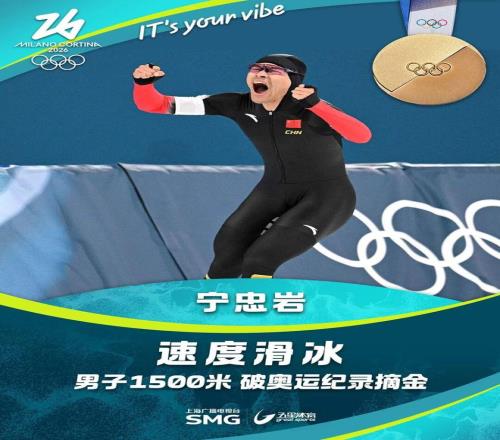 中国速度被镌刻在了米兰速滑馆!中国选手宁忠岩创造历史。他以1:41.98的成绩打破奥运纪录,稳居第一,为中国队摘下了冬奥会历史首块男子1500米金牌!美国选手乔丹·斯托尔兹排名第二,摘下银牌。荷兰滑将基尔德·纽斯摘下铜牌。赛后,宁忠岩表示,自己终于翻过了乔丹这座大山。