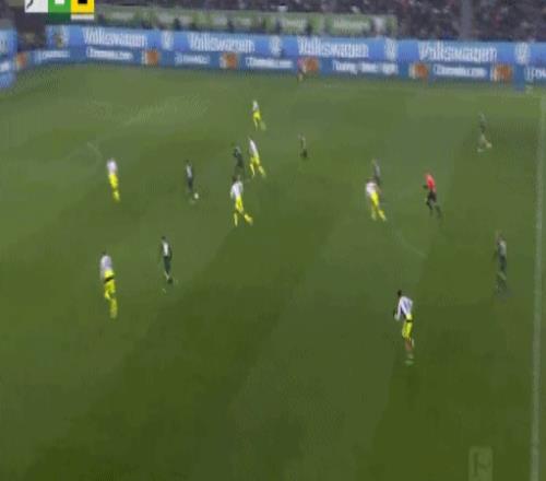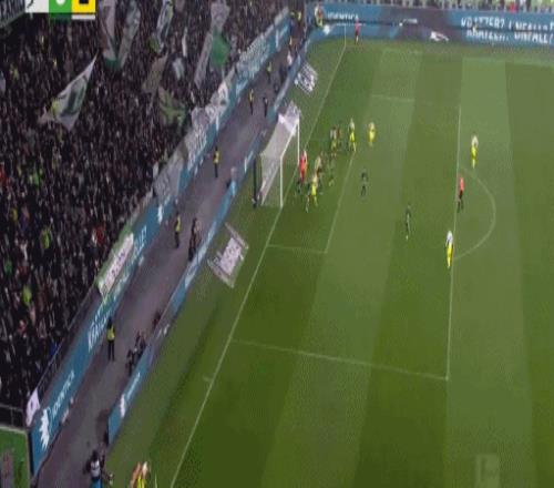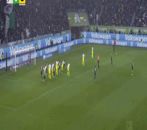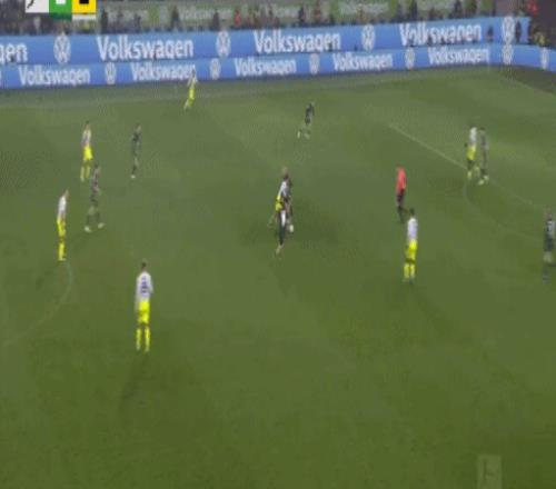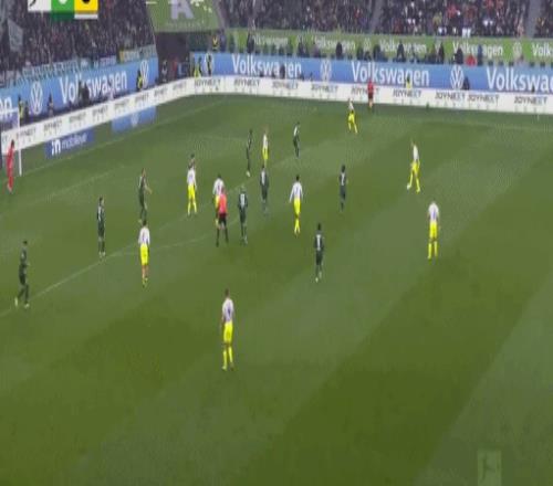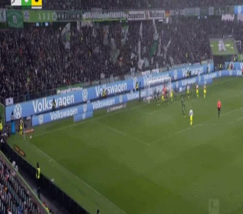 第52分钟,阿诺德开出任意球,库列拉基斯头球破门,沃尔夫斯堡1-1多特