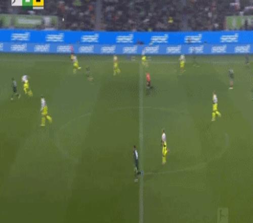 第67分钟,没穿射门靴,沃尔夫斯堡接连错失机会