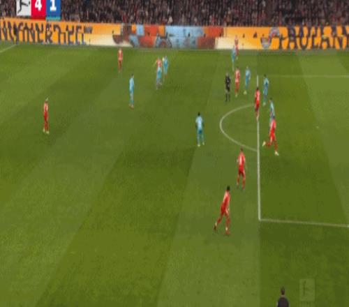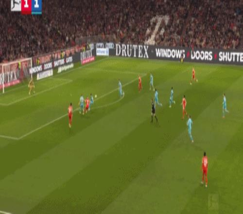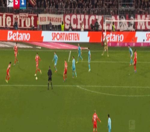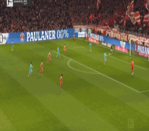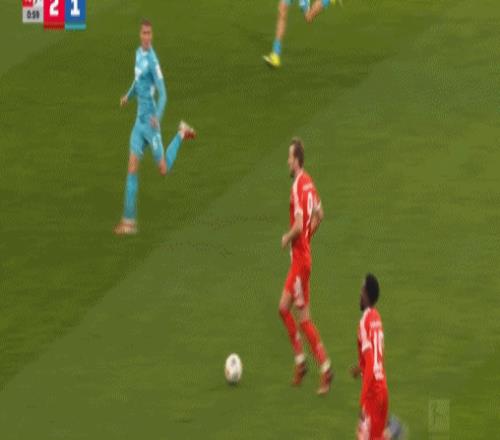 第20分钟,阿克波古马送红点套餐,凯恩命中,拜仁1-0霍芬海姆