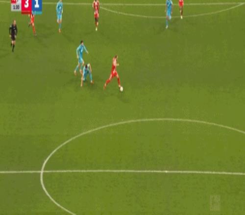 第45+2分钟,凯恩送助攻,迪亚斯破门,拜仁3-1霍芬海姆