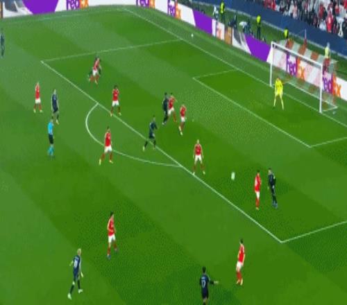 第97分钟,罗德里戈也吃到红牌,皇马剩下9人作战。第98分钟,奥尔斯内斯定位球传中,特鲁宾头球攻门得手,本菲卡压哨再下一城!这样一来,本菲卡4-2爆冷掀翻皇马!