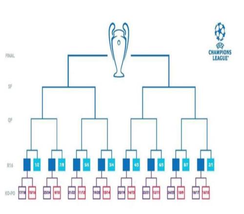 以此类推,排名相邻的高顺位球队将与排名相邻的低顺位球队通过抽签配对。