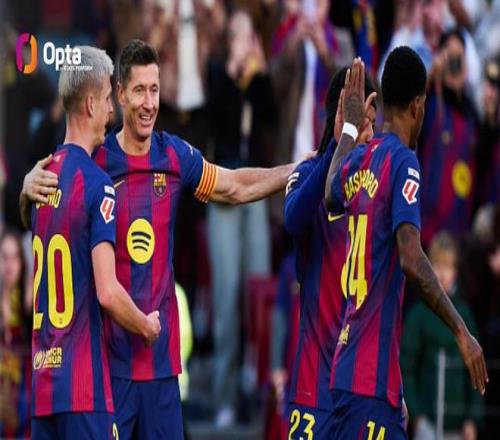 莱万建功比肩梅罗,亚马尔世界波创生涯纪录,巴萨30主场11连胜