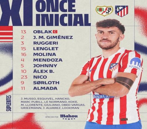 巴列卡诺vs马竞:弗兰佩雷斯、阿霍马克首发,奥布拉克、朗格莱出战