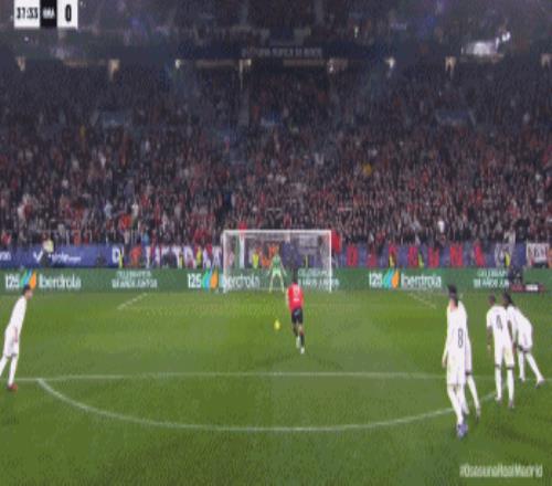 第25分钟,奥萨苏纳传中造险,库尔图瓦精彩扑救