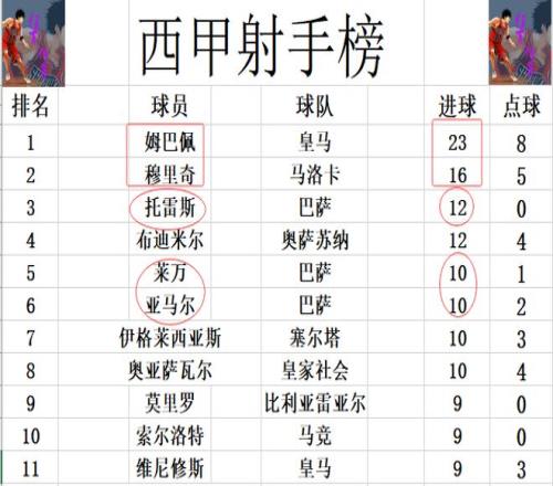 射手榜方面,姆巴佩23球领跑,穆里奇16球排在第2。托雷斯今天替补登场没有进球,还是和布迪米尔12球并列第3。莱万,亚马尔同样没有进球,依然和伊格莱西亚斯,奥亚萨瓦尔10球并列第5。