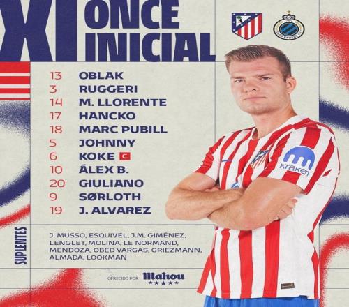马竞总分74布鲁日晋级欧冠16强,瑟洛特戴帽,卡多佐破门