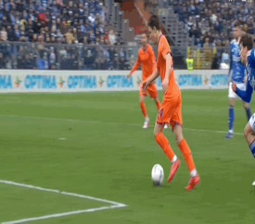 第49分钟,小基恩边路背身拿球后突破,被帕里西放倒裁判出示黄牌警告