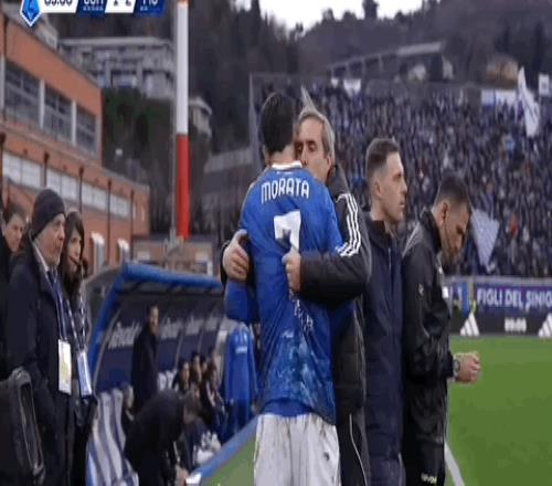 第89分钟,莫拉塔两黄变一红被罚下,在场边又与教练发生口角