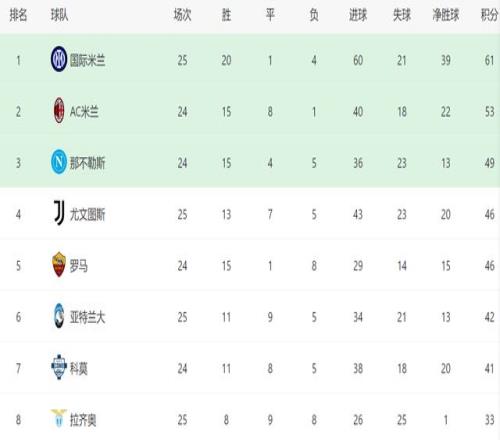 意甲最新积分战报:科莫爆冷,拉齐奥倒下,国米绝杀尤文