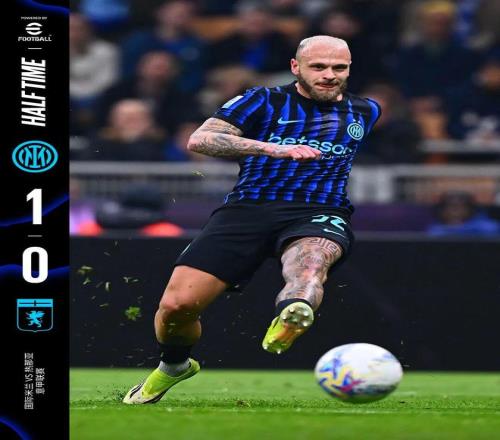 上半场比赛结束,我们暂时1比0领先于热那亚。