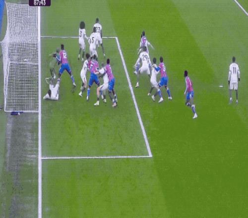 第87分钟,利用角球的机会,理查兹为水晶宫扳回一城。