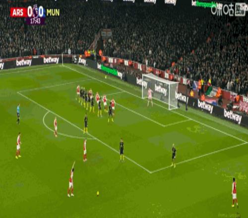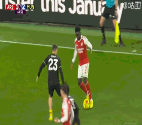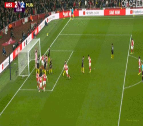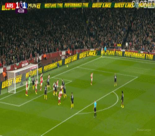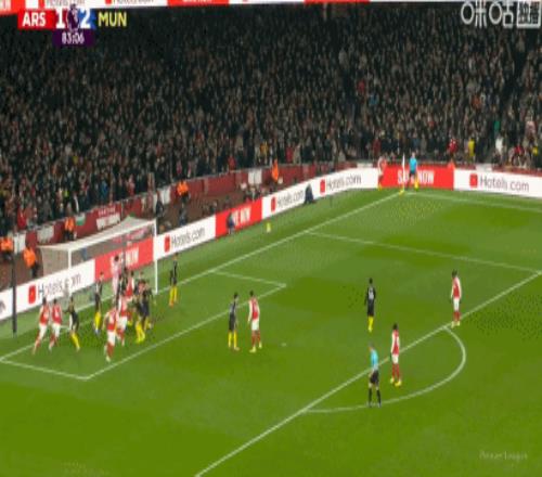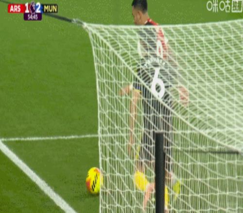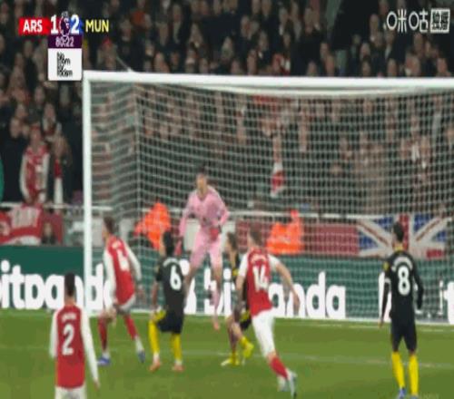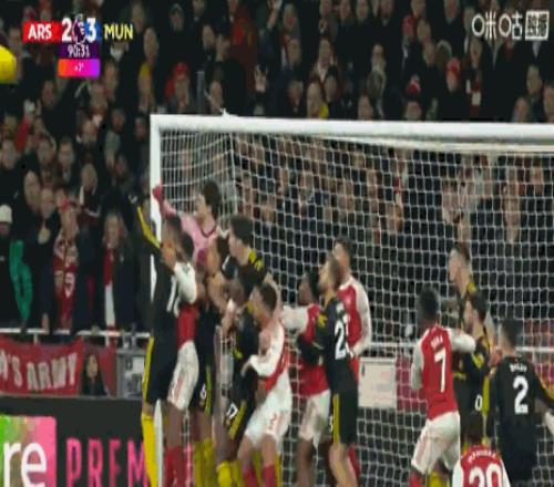 第81分钟,萨卡传中,皮球砸到哲凯赖什肩膀高出横梁