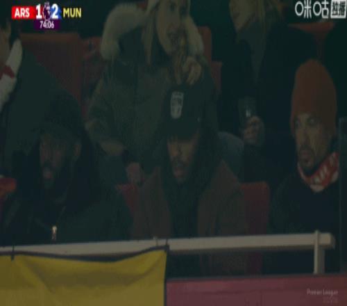 第74分钟,镜头给到现场观战的亨利和伊恩-赖特