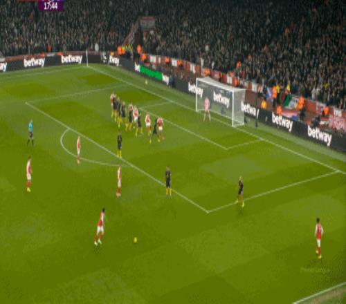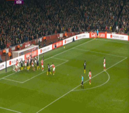 比赛第18分钟,阿森纳通过任意球打出了本场比赛的第一次威胁进攻: