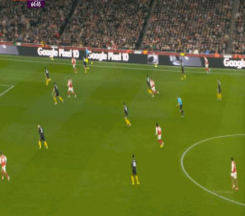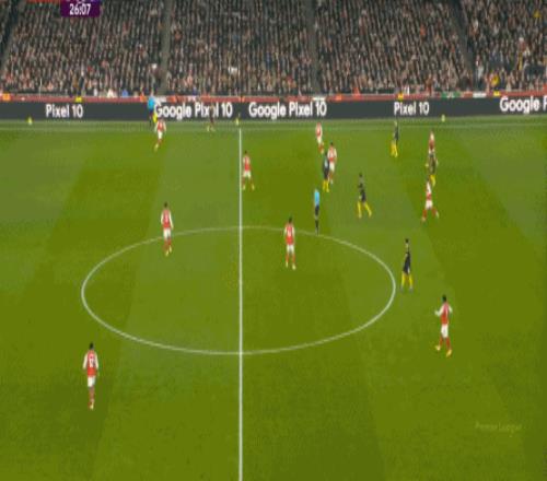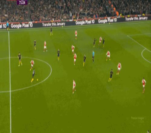你说这有没有效,当然还是有的,比如在阵型拉得更开之后,阿森纳通过边路形成的进攻效果确实提升了半个档次: