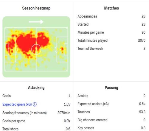 数据表明,范戴克和阿利斯特是本赛季为红军出场最多的球员,这是一份来自一位主教练的信任,也是对其核心依赖者最有力的肯定。