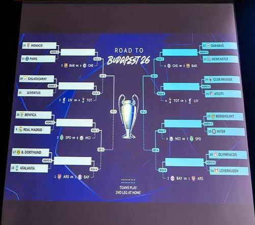 欧冠改制后,联赛阶段前8名直通16强,第9-24名进入附加赛,8支种子队享有先客后主优势。附加赛焦点对阵中,皇马迎战本菲卡、巴黎遭遇摩纳哥、国米对决博德闪耀,其余对决包括纽卡斯尔vs卡拉巴赫、尤文vs加拉塔萨雷、马竞vs布鲁日、亚特兰大vs多特蒙德、勒沃库森vs奥林匹亚科斯。附加赛首回合2月17-18日进行,次回合2月24-25日打响,16强抽签定于2月27日,决赛5月30日在布达佩斯上演。