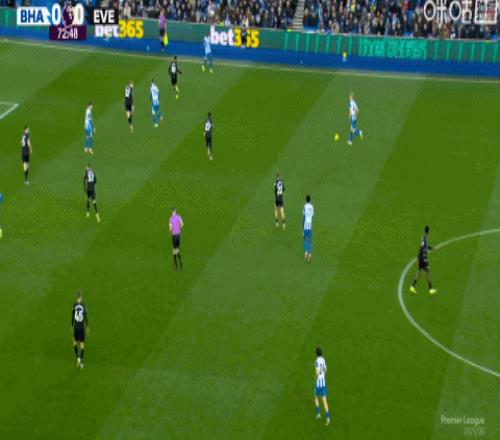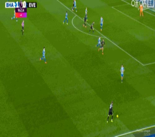 第52分钟,埃弗顿连续配合,迪尤斯伯里-霍尔低射稍稍偏出