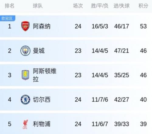 英超第24轮结束了所有比赛,最新积分榜如下!
