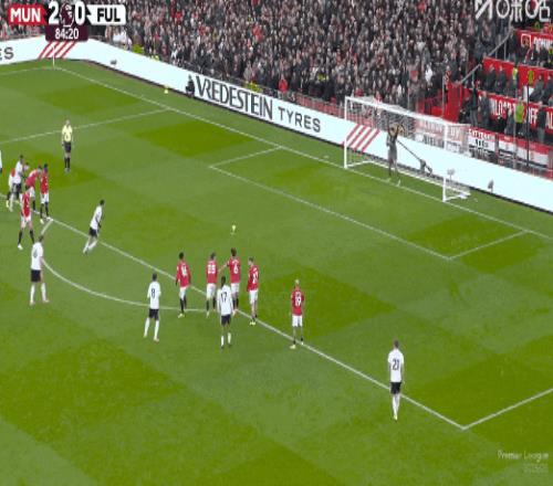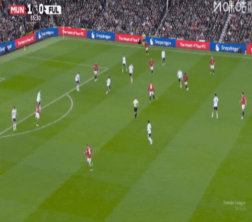 第19分钟,B费助攻,卡塞米罗后点泰山压顶头槌破门,曼联1比0富勒姆!