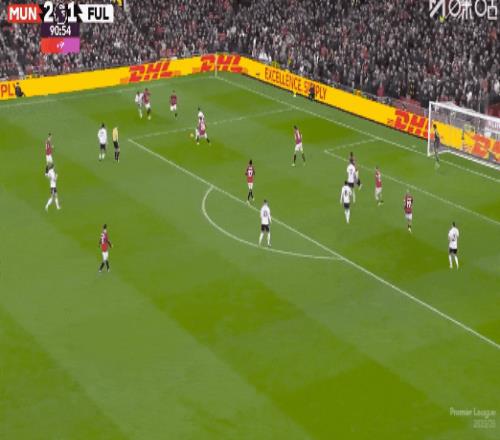 补时第4分钟,谢什科得球转身打门完成反绝杀!曼联3比2富勒姆。