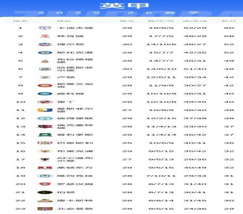 英超第24轮结束了所有比赛,最新积分榜如下!