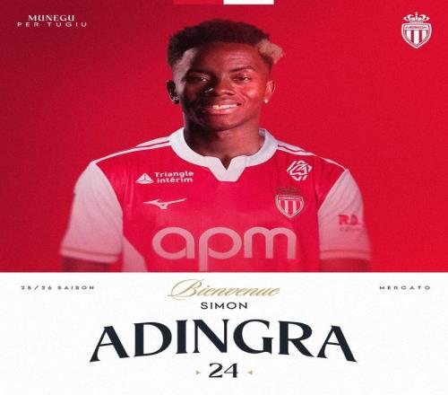 官方消息,摩纳哥租借签下桑德兰前锋阿丁格拉,含买断权。