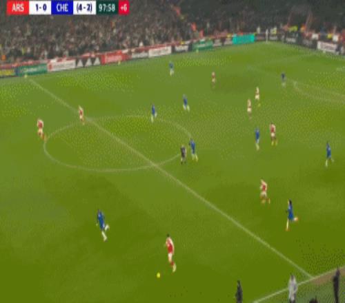 第90+8分钟,哈弗茨过掉桑切斯,随后低射破门,阿森纳1-0切尔西