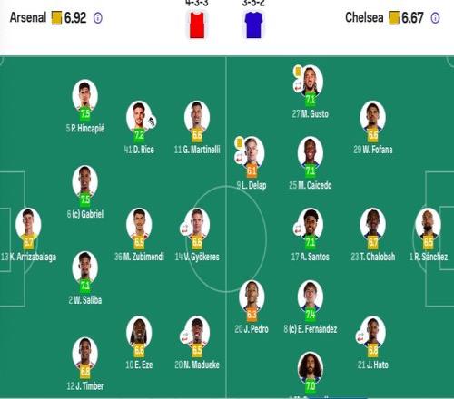 切尔西首发:1-桑切斯、27-古斯托(87'34-阿奇姆彭)、29-福法纳、23-查洛巴、21-哈托(61'41-埃斯特旺)、3-库库雷利亚、25-凯塞多、17-桑托斯(75'49-加纳乔)、8-恩佐、9-德拉普(61'10-帕尔默)、20-若昂-佩德罗