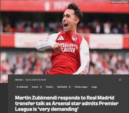 祖比门迪回应皇马传闻!铁血防守:枪手多项防守数据英超第一!