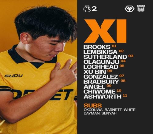 北京时间2月7日20:30,英超U21联赛,徐彬代表狼队U21首发,身穿6号球衣,出战与伊镇U21的联赛,这也将是徐彬留洋后的首场比赛。