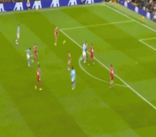 第92分钟,阿利松禁区内扑倒努内斯,裁判判罚点球,随后哈兰德操刀命中,完成传射建功好戏,曼城反超比分,2-1!