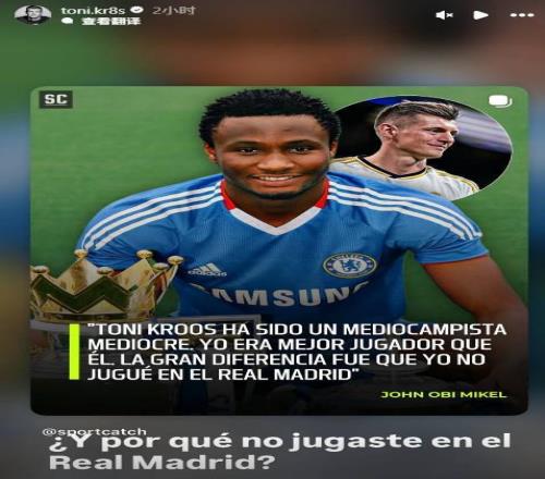 早些时候,米克尔在自己的播客节目中谈到了自己对克罗斯的看法,他表示,自己比克罗斯更优秀,只是没有去皇马,随后,克罗斯本人在社交媒体上进行了回应。