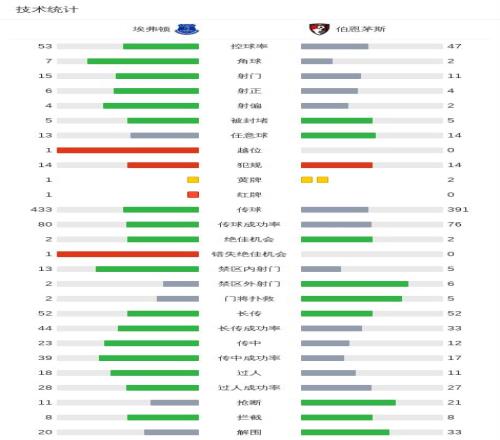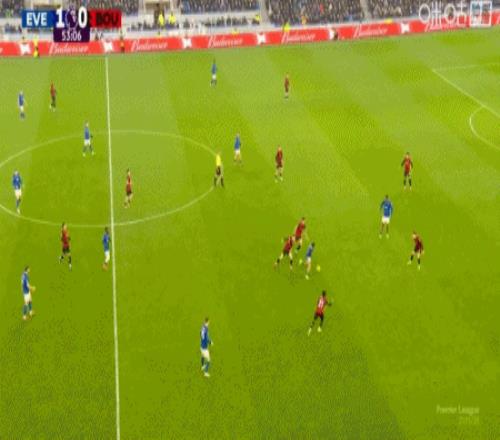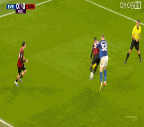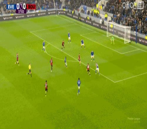 第42分钟,拉扬送点,恩迪亚耶主罚点球命中,埃弗顿1-0伯恩茅斯