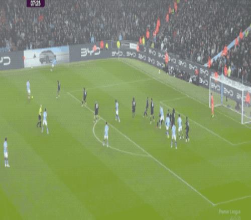 第24分钟,曼城如法炮制,罗德里将球分到右路,努内斯果断传中,哈兰德头球没能顶到,皮球砸在博格的头上造成乌龙助攻,塞梅尼奥抢射破门。