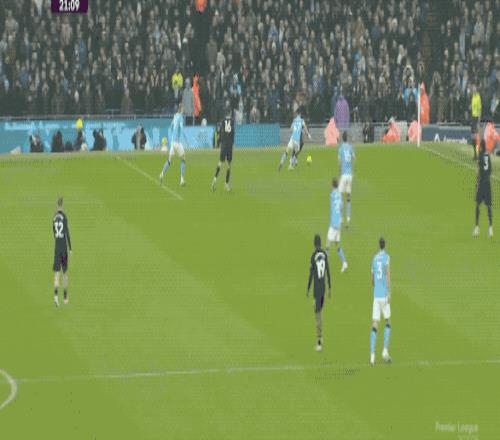 第22分钟,曼城前场高位逼抢造成富勒姆的出球被抢断,奥莱利的远射还是操之过急,放了高射炮。