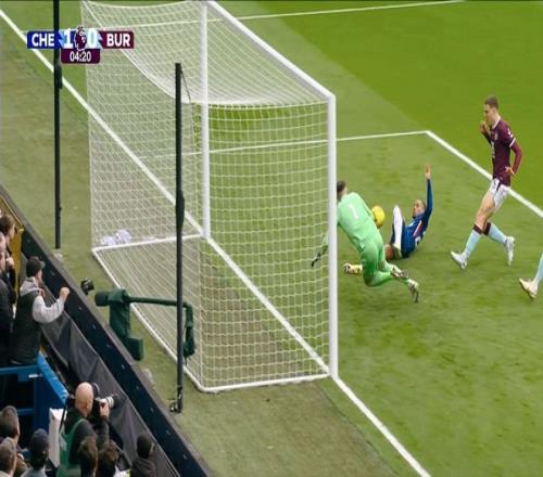 第34分钟,福法纳禁区前沿直接放倒了突破的汉尼拔,裁判给了伯恩利一个位置非常好的定位球。爱德华兹一脚劲射,擦着立柱偏出!几分钟后,凯尔沃克停球出现重大失误,帕尔默中路单刀快速推进,但是最后的临门一脚被门将扑住!切尔西错过绝佳扩大比分的良机。半场比赛结束,切尔西暂时一球领先。