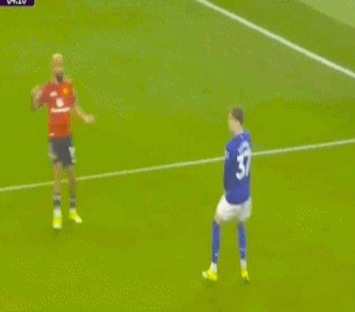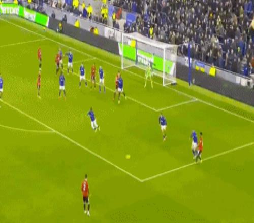 第30分钟,迪亚洛右路突破被布兰斯韦特拉拽,为曼联拼得一个定位球机会。B费45°传中被解围,达洛特禁区外停球顺势凌空抽射,直奔球门右上角,最终擦着立柱稍稍偏出。