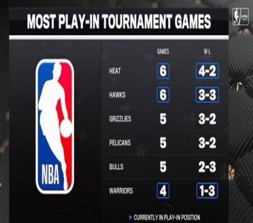 出战附加赛场数榜:热火老鹰6场最多 勇士4场 本赛季仍在附加赛区