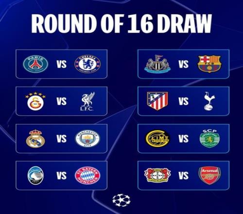 欧冠1/8决赛对阵:(种子队在后,先客后主)