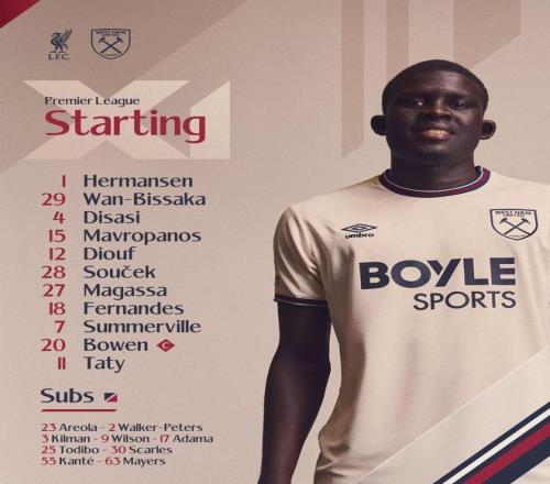利物浦vs西汉姆:萨拉赫、埃基蒂克首发,麦卡、加克波出战