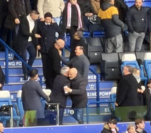 造访老东家,马雷斯卡现身莱斯特城对阵诺维奇的比赛现场